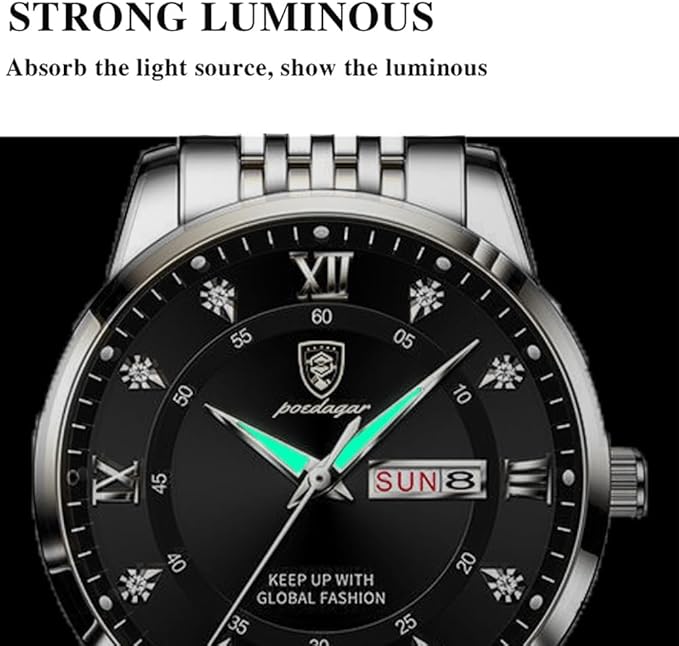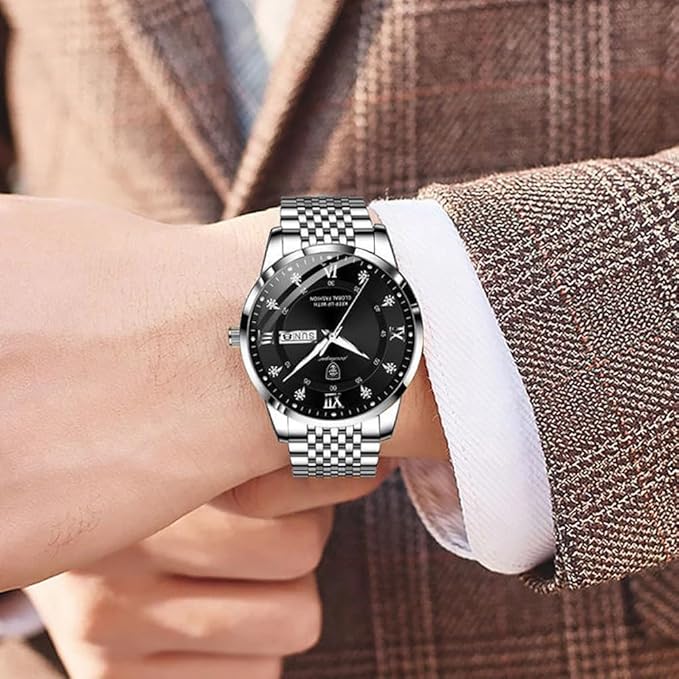 RovyFota Male Wrist Watches, Luminous Pointer, Men’s Watch Analog Quartz Movement, Stainless Steel, Waterproof, Apply to Luxury Dress Business, Big Face Rome Number Diamond Dial