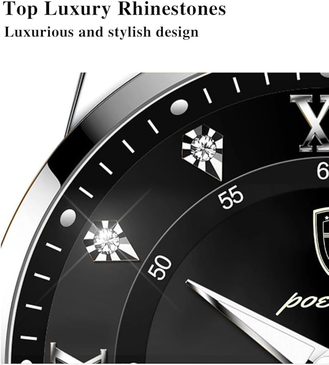- 【Sophisticated Dial】The eight positions of the dial are embellished with large shining rhinestones, which show noble temperament and are always glorious.Mineral-enhanced watch mirror, feel the transparent world, enjoy the extraordinary visual experience through the transparent world brought by the mineral-enhanced watch mirror; every minute and every second is clearly visible.